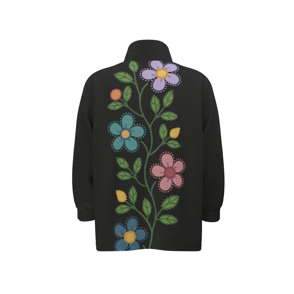 This Métis Dotted Floral sweater jacket is both snug and stylish, with a stand collar design and high-quality zippers for easy wear. Made from durable and wrinkle-resistant fabric, this jacket is elegant and stands out from the crowd. This regular fit sweater is made from 95% polyester and 5% spandex.