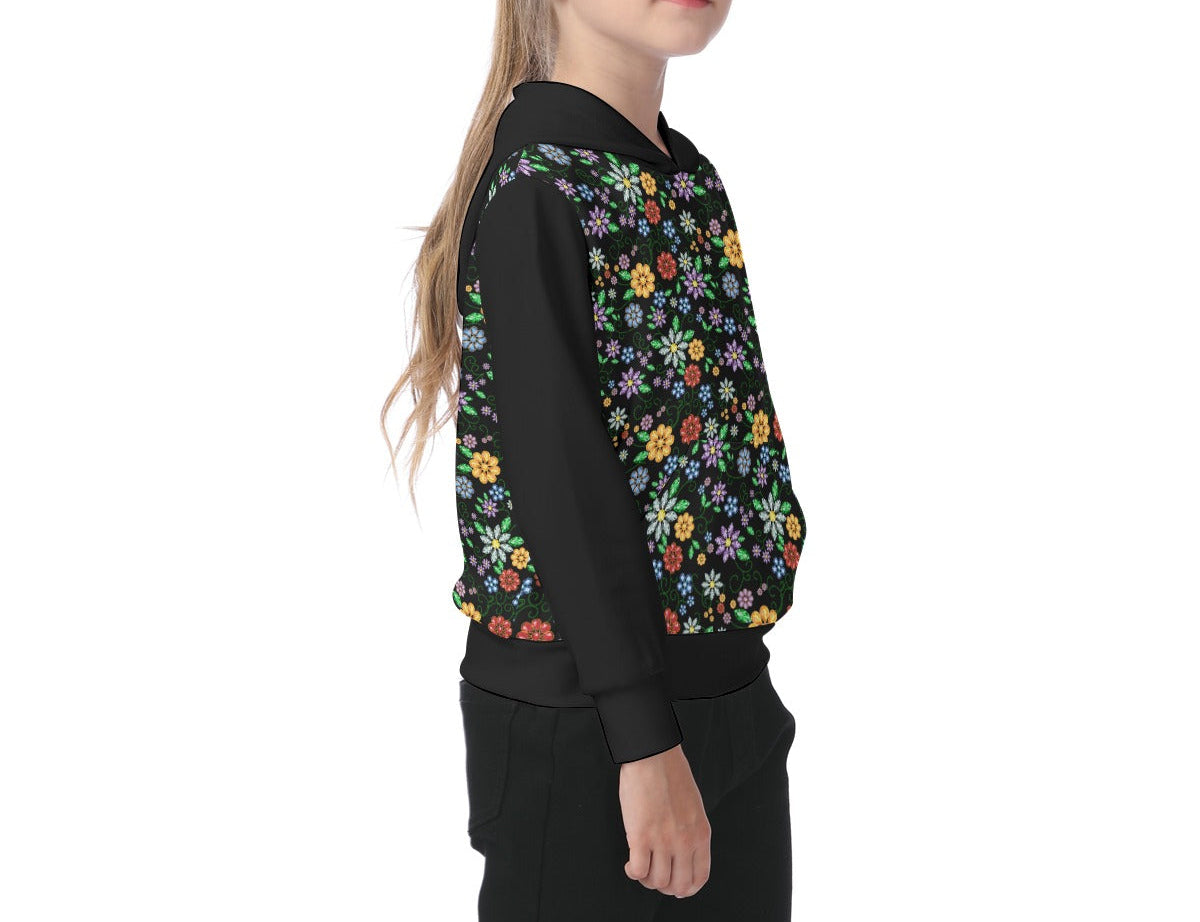 Métis Inspired Floral Beaded Fleece Pullover Hoodie