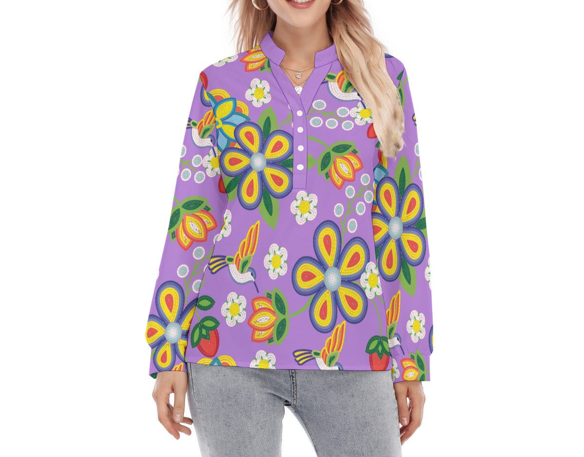 Métis Lavender Floral Beaded Long Sleeve Blouse