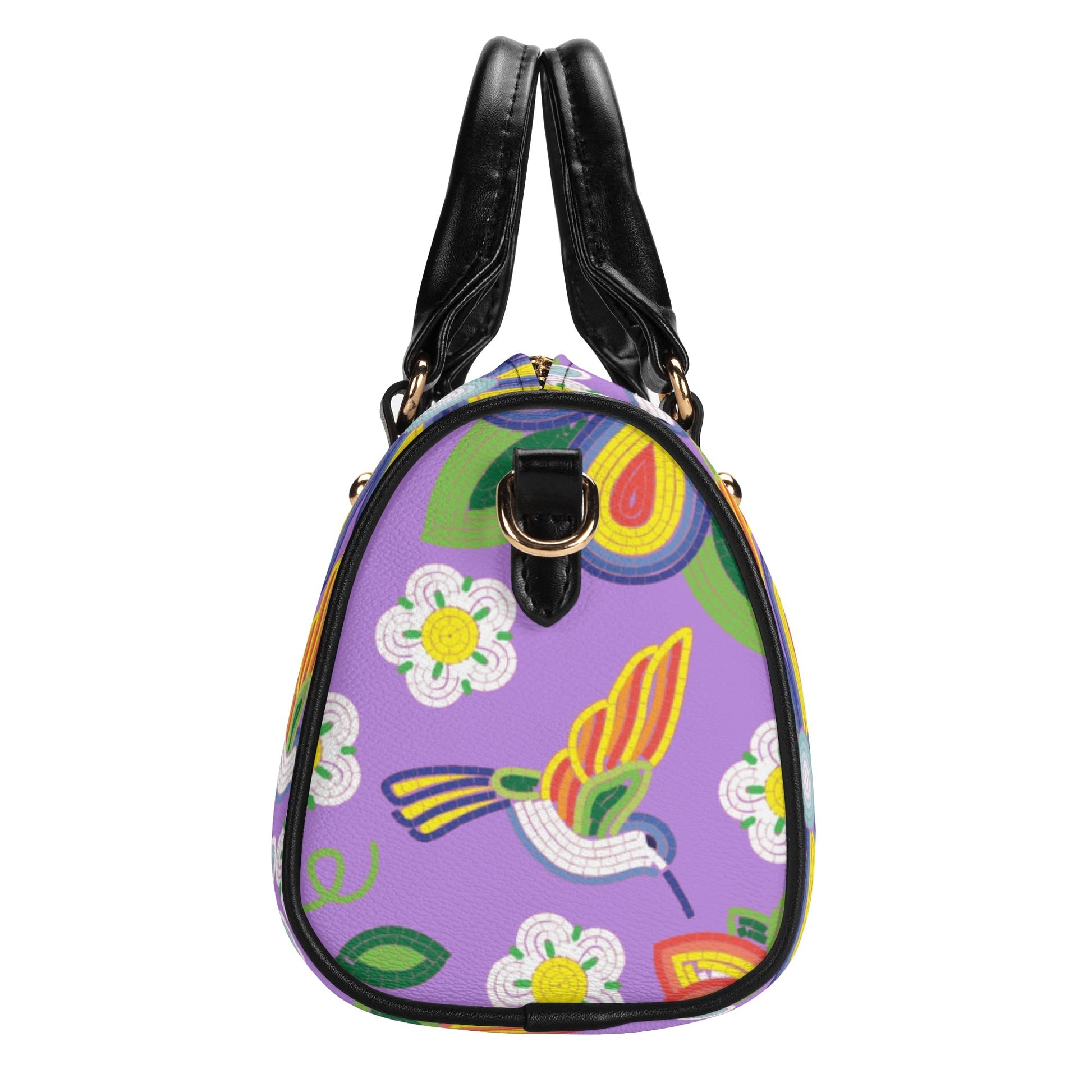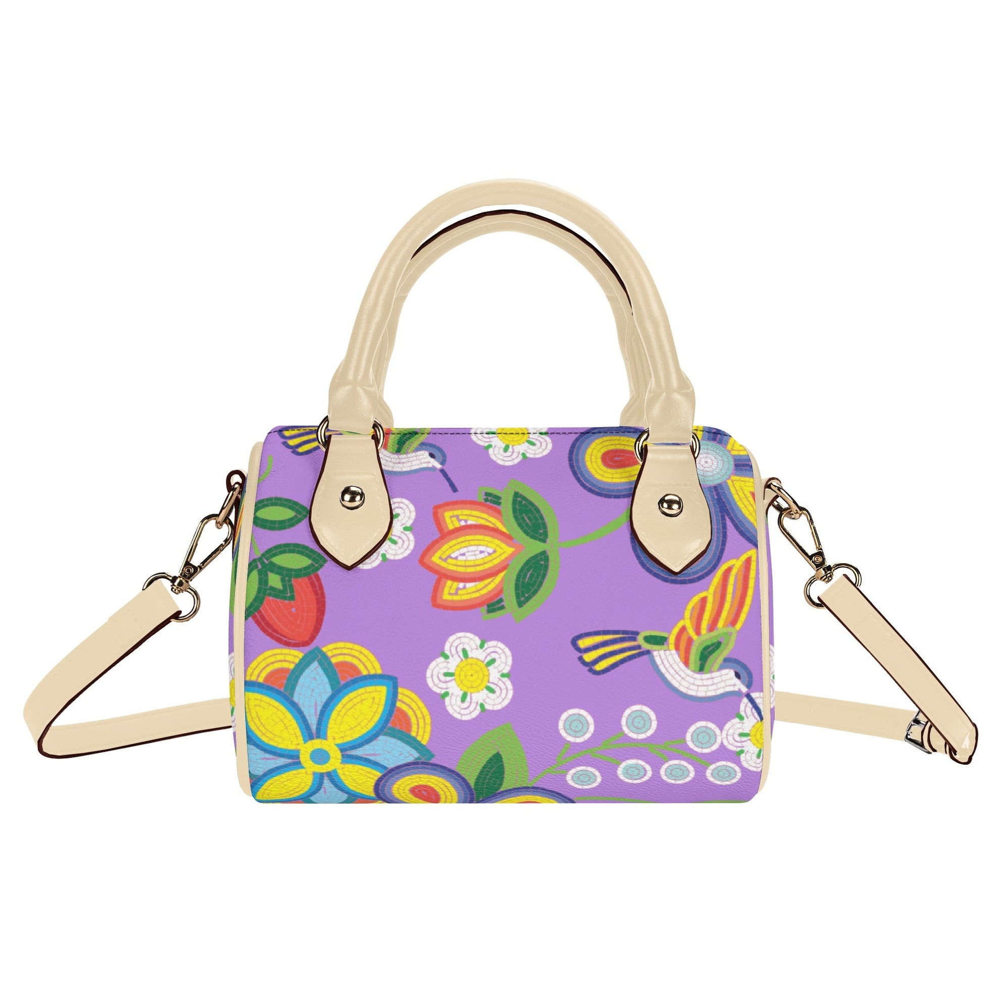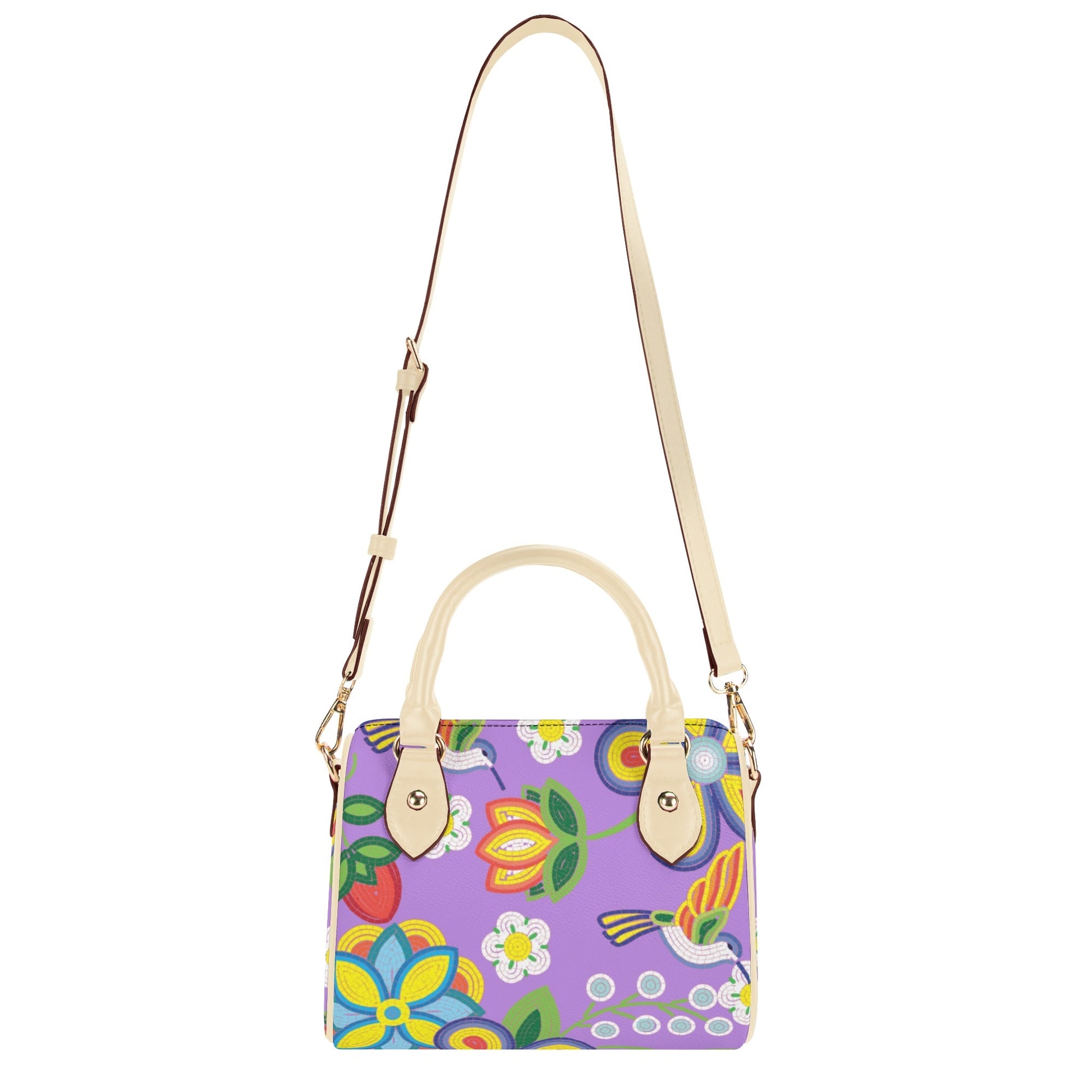 Score major style points with this Métis Lavender Floral Beaded Mini Boston Bag - it's the perfect gift for any fabulous Métis trendsetter! Made from PVC and faux leather, this bag features our unique Floral Beaded pattern and plenty of space for all your essentials. Plus, it's available in two classic colors and is lightweight, waterproof, and versatile. Whether as a handbag, shoulder bag, or cross-body, it's sure to make a statement!