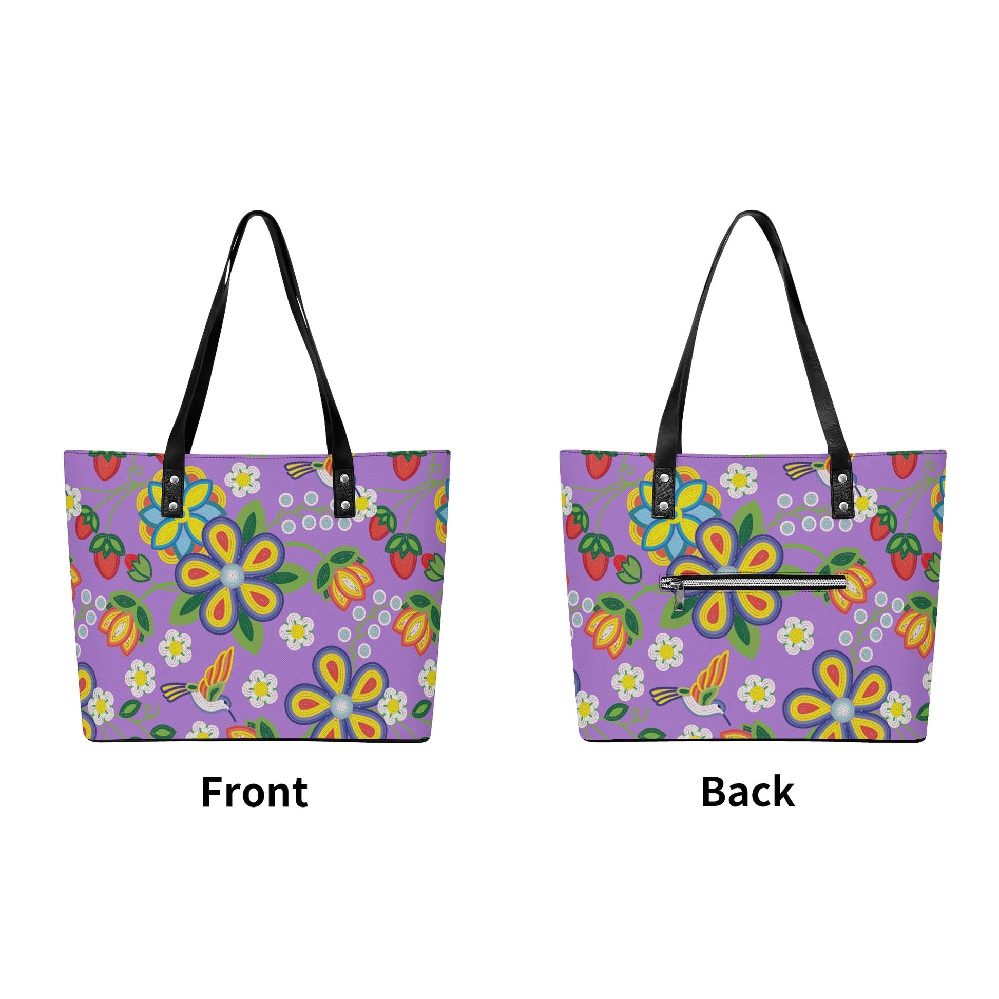 Elevate your everyday style with this chic Métis Lavender Floral Beaded PU Tote Bag. Crafted from high-quality PU leather, this handbag offers both durability and sophistication. With its large capacity, comfortable handle, and convenient zipper closure, it's perfect for daily use, whether for work or leisure.